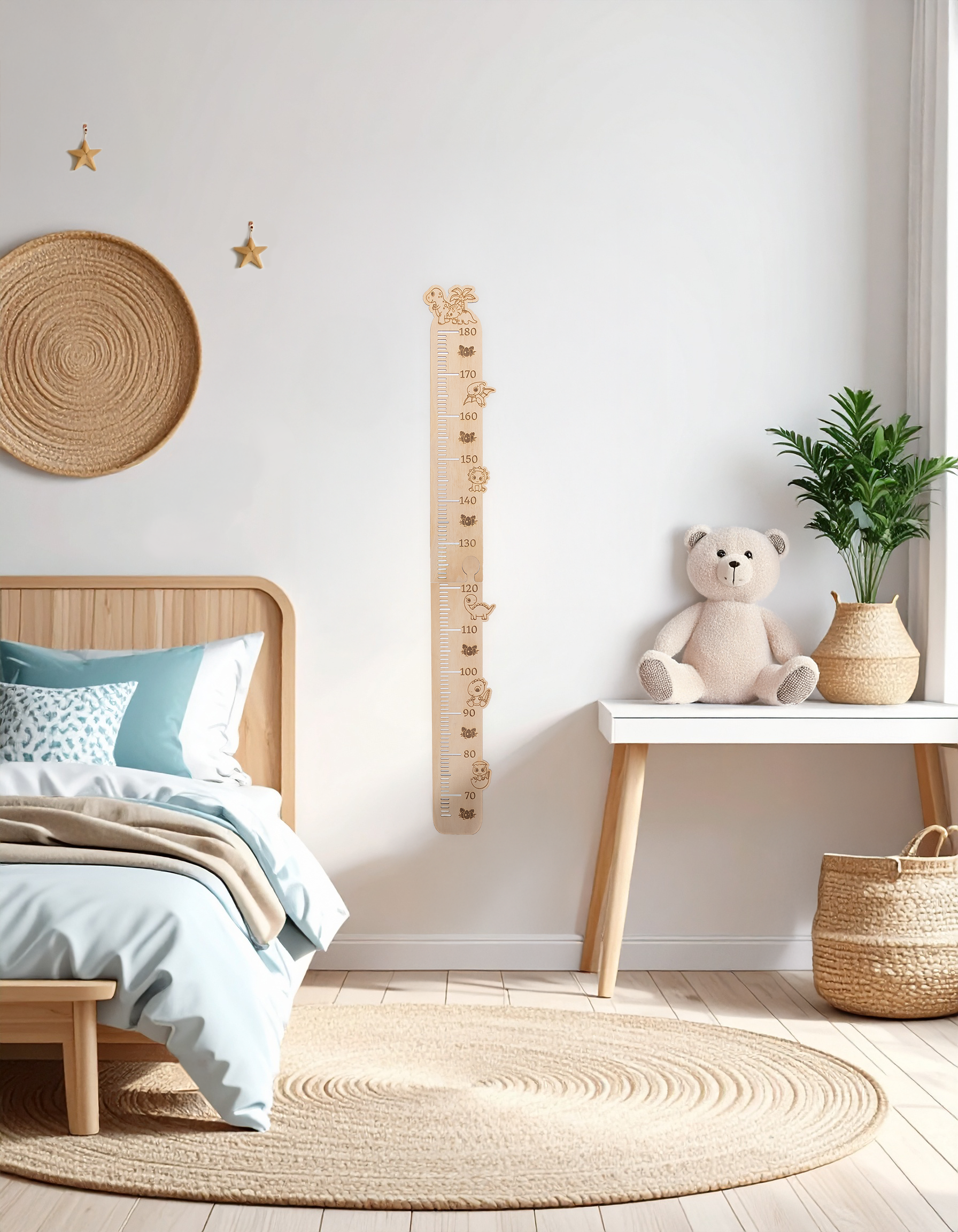 Make tracking your child’s growth even more magical with our Dinosaur Height Chart! Designed with fun and friendly dinosaur characters, this wooden height chart adds a playful prehistoric vibe to your child’s bedroom or playroom décor.