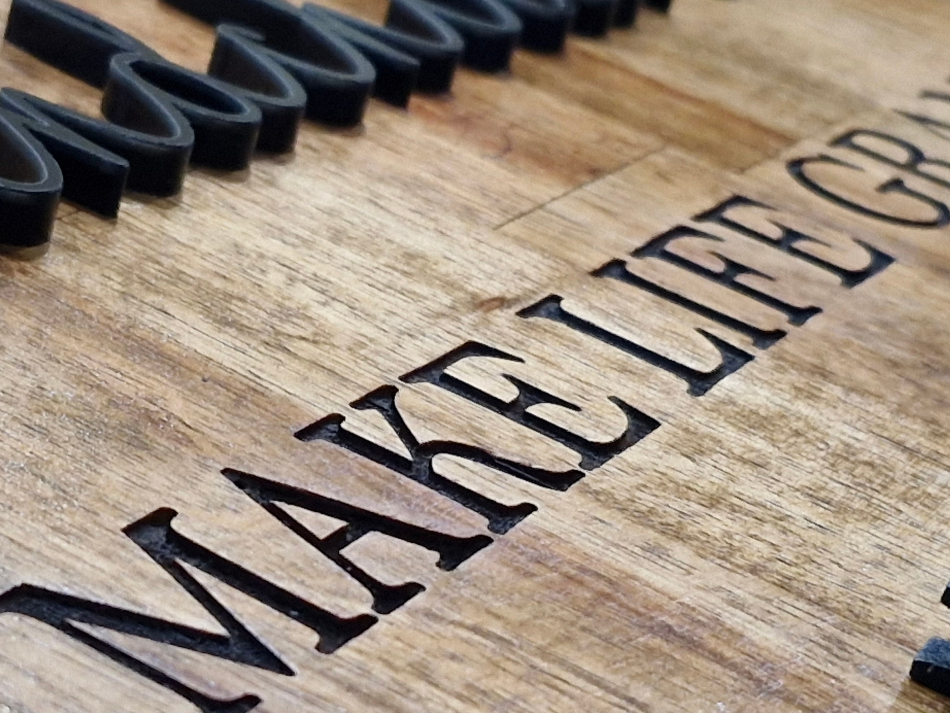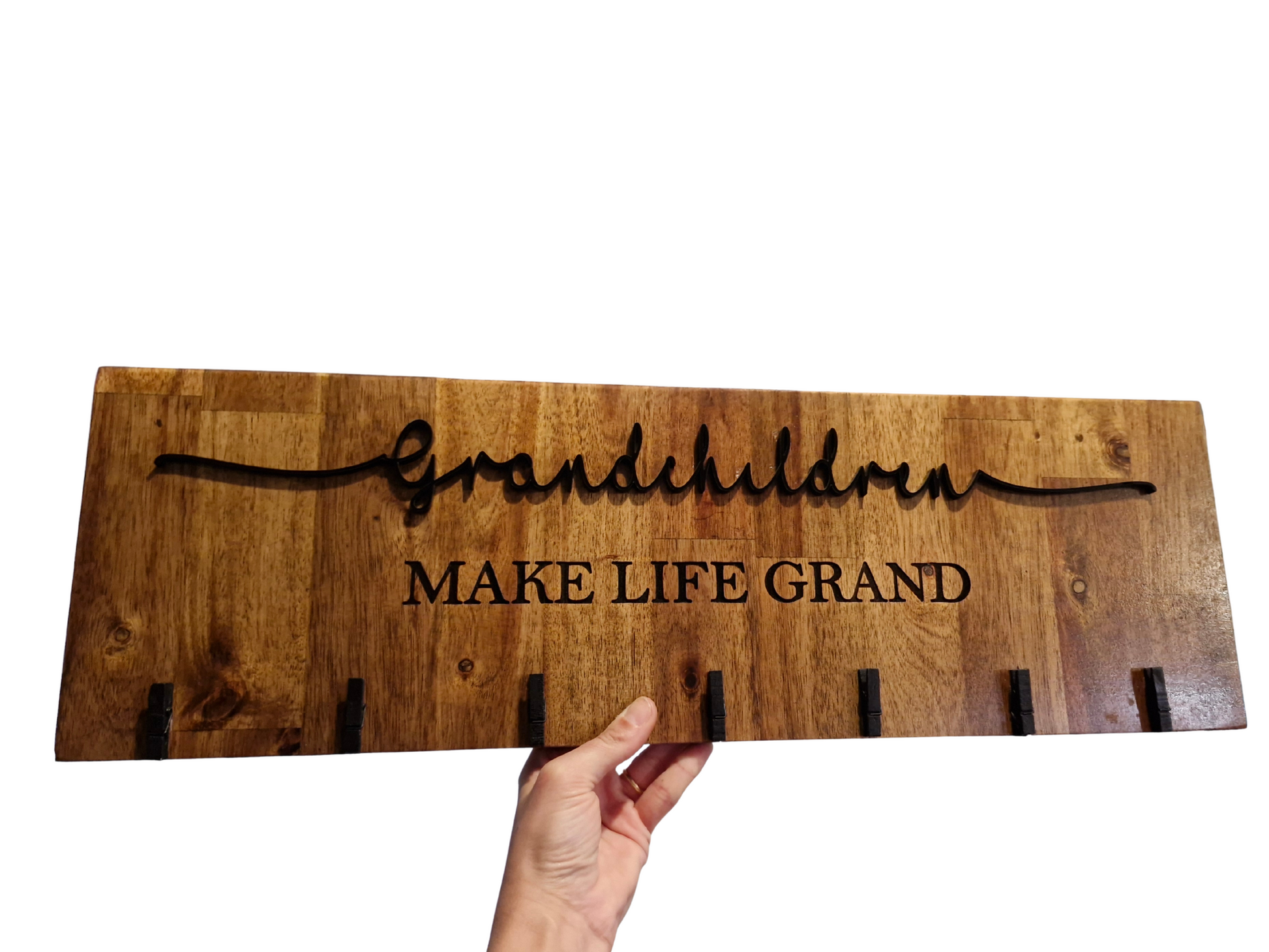 • Show Off Your Everything: "Grandchildren" pops in bold, 3D 6mm black acrylic for maximum impact, while "make life grand" is delicately engraved into the timeless acacia hardwood