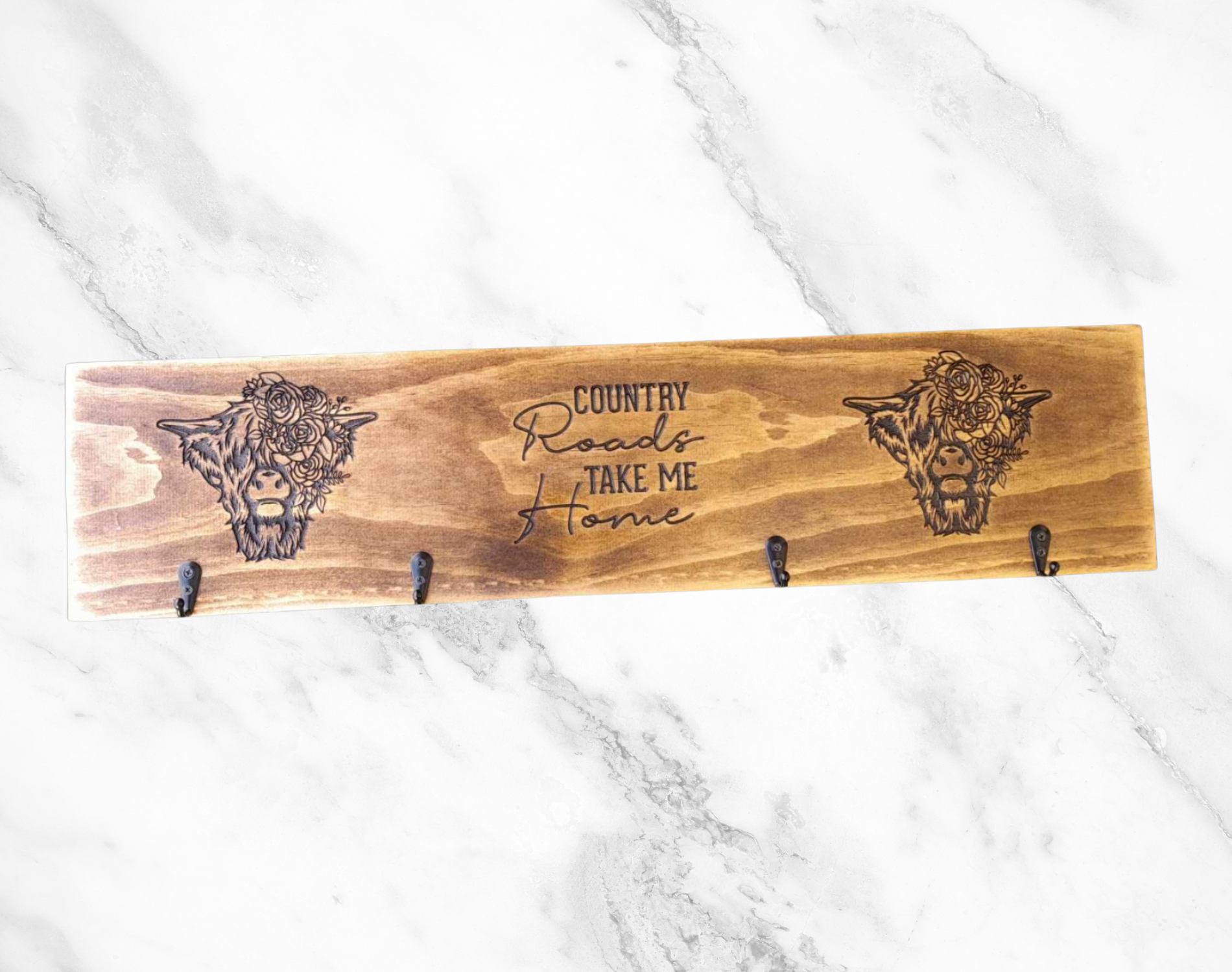 Timber Keyholder - Country Roads Take Me Home - Highland Cow